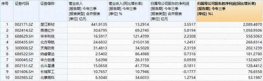 图:国防军工ETF(512810)成份股三季报净利同比增速TOP10(截至2025.10.27)